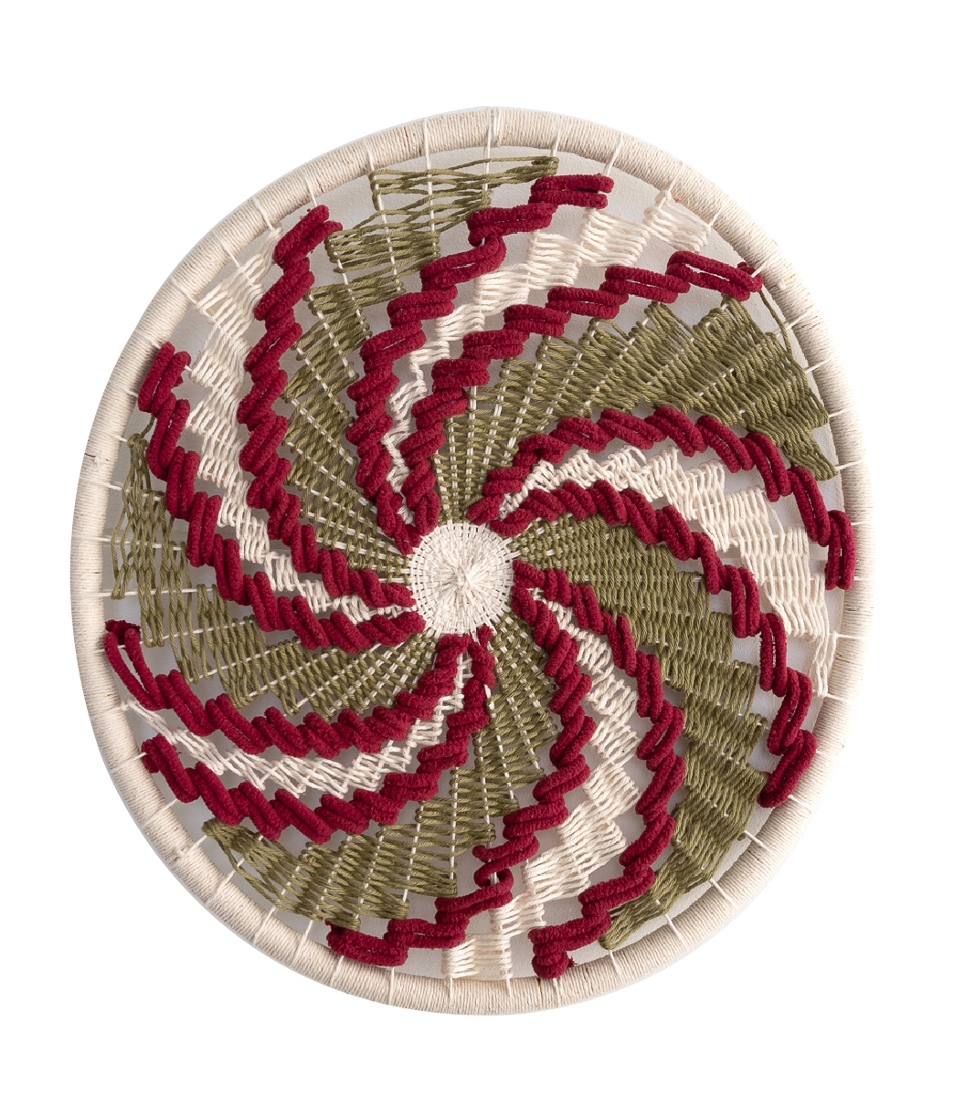 | dc.description | Tejido circular hecho a mano en tonos rojo, verde, beige | es_ES |