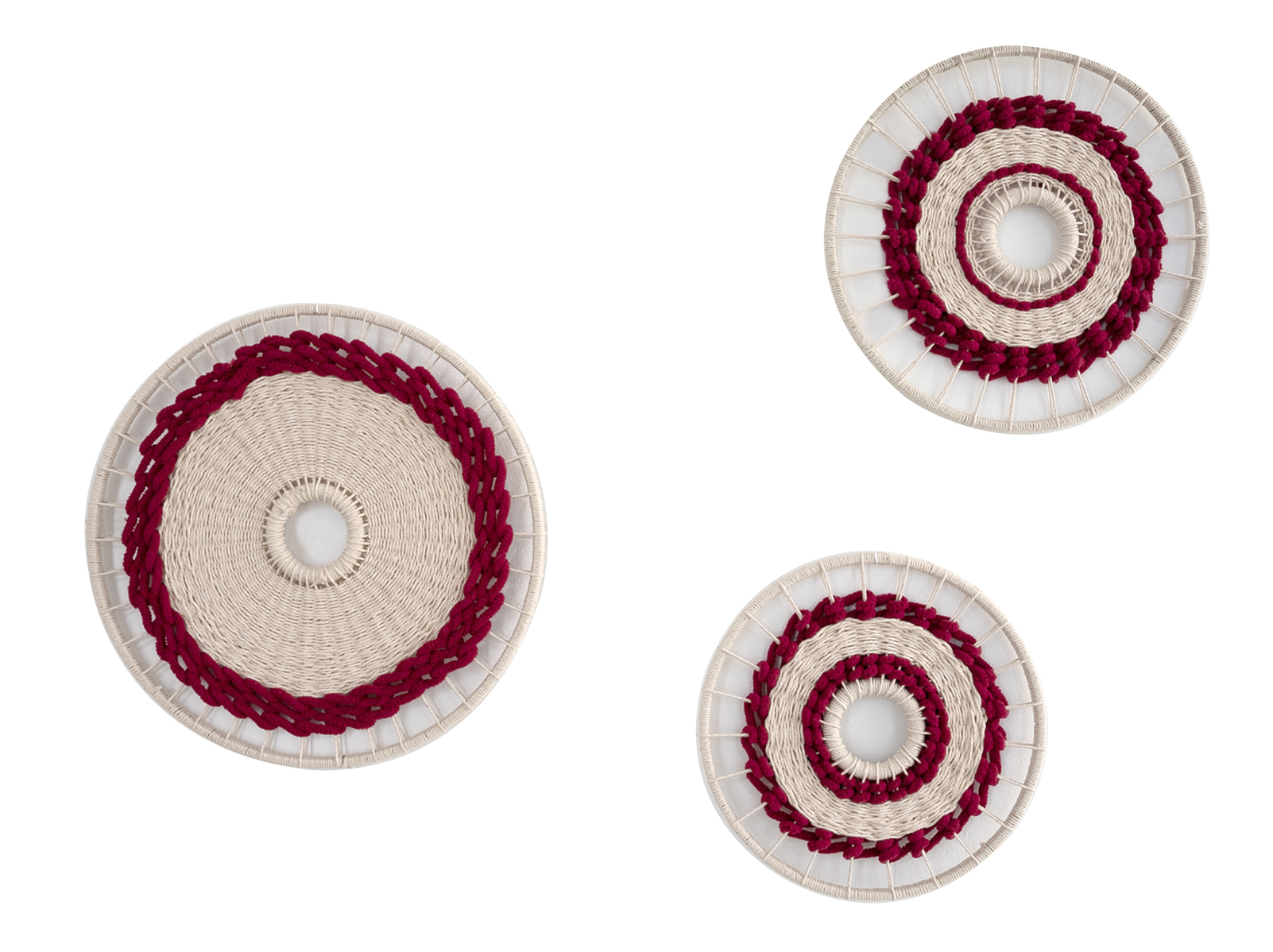 | dc.description | 3 Tejidos circulares hecho a mano en tonos rojo, y beige | es_ES |