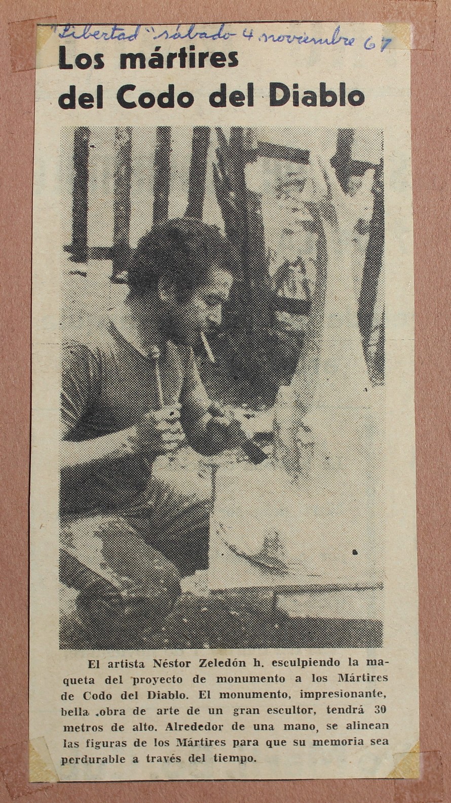 | dc.description | Nota de periódico la Libertad (?) que anuncia que Néstor Zeledón ha concluido la maqueta de un monuesto previsto a los Mártires del Codo del Diablo. Este consistía en una mano hacia arriba, de unos 30 m de altura, en la que se alinearían las figuras de los mártires. | |