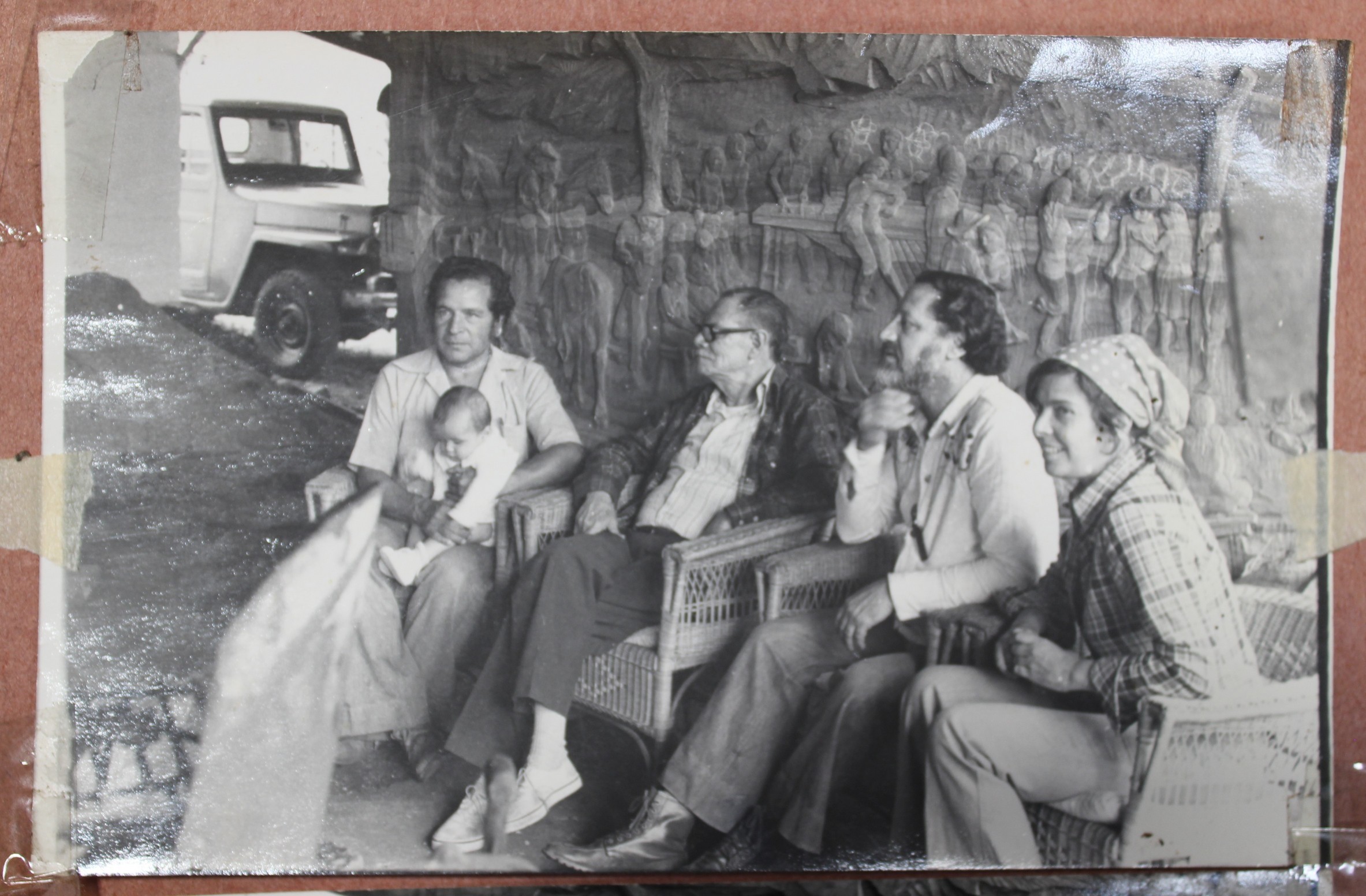 | dc.description | Fotografía de Néstor Zeledón cargando a América en sus regarzos y acompañado de Carlos Salazar Herrrera, Antidio Cabal y Maira Jiménez, frente al relieve El Baile. | |