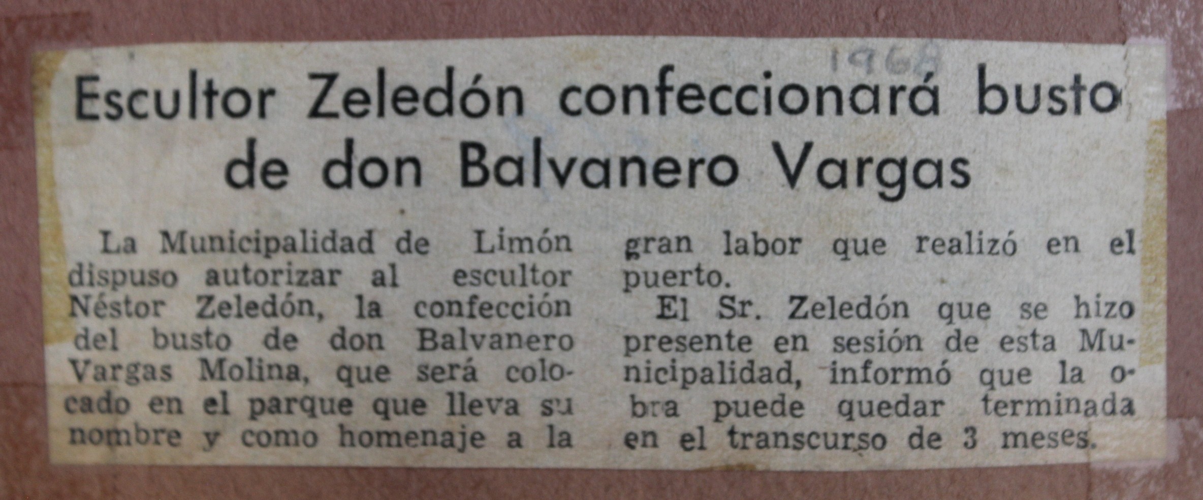 | dc.description | Nota que anuncia que Néstor Zeledón confeccionará busto de don Balvanero Vargas, encargado por la Municipalidad de Limón. | |