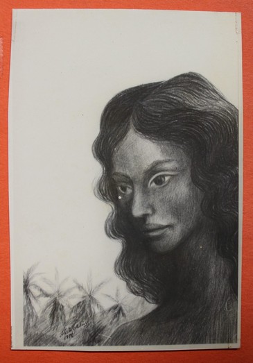 | dc.description | Fotografía de un dibujo realizado por Néstor Zeledón, representando un retrato femenino con un a serie de plantas en el fondo. | |