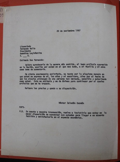 | dc.description | Carta de parte de Néstor Zeledón, para el presidente de la Asamblea Legislativa, Fernando Volio, agradeciendole la redacción de un artículo publicado en La Nación, en el cual habla bien de él y de su familia. Como P.D. incluye un comentario sobre una transacción y su dispocición para llegar a un acuerdo sobre esta. | |