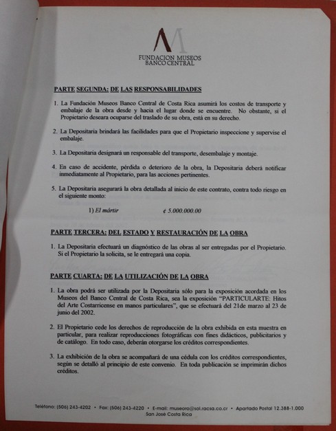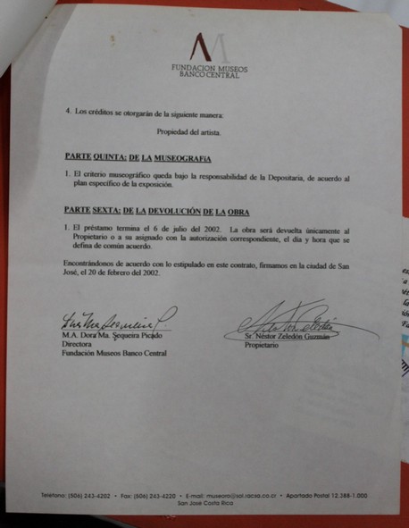 Contrato de préstamo de obras de arte para la exposición "PARTICULARTE: Hitos del arte costarricense en manos particulares"
