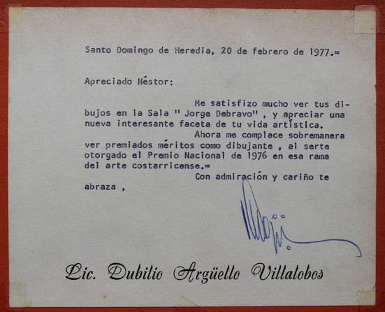 | dc.description | Mensaje para Néstor Zeledón, de parte de Dubilio Argüello Villalobos, felicitándolo por su exposición de dibujos, así como por la obtención del Premio Nacional de Cultura. | |