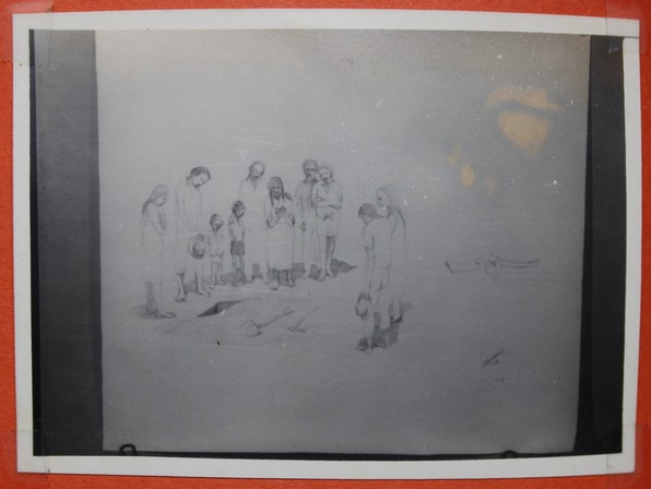 | dc.description | Fotografía de un dibujo realizado por el artista Néstor Zeledón, representando a un grupo de personas, niños y adultos, alrededor de una pequeña excavación. | |