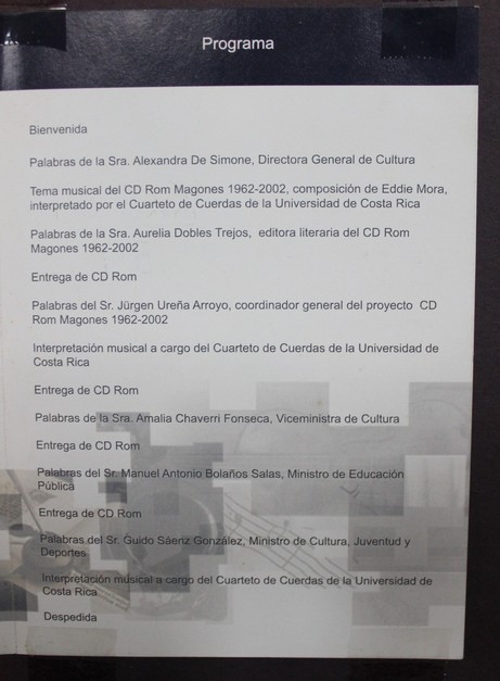 | dc.description | Folleto entrega de Premio Magón con programa de la ceremonia. | |