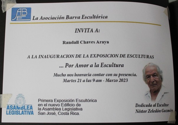 La Asociación Barva Escultórica Invita a: Randall Chaves Araya A la inauguración de la exposición de esculturas ''...Por Amor a la Escultura''