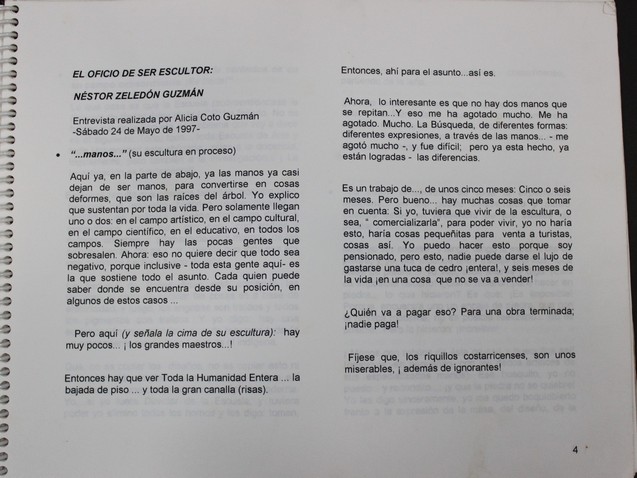 Registro de Entrevista con el Escultor Néstor Zeledón Guzmán