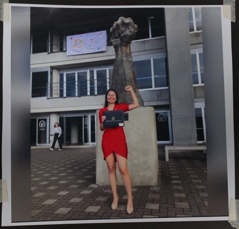 | dc.description | Fotografía de graduada junto a la escultura Yo Protesto. | |
