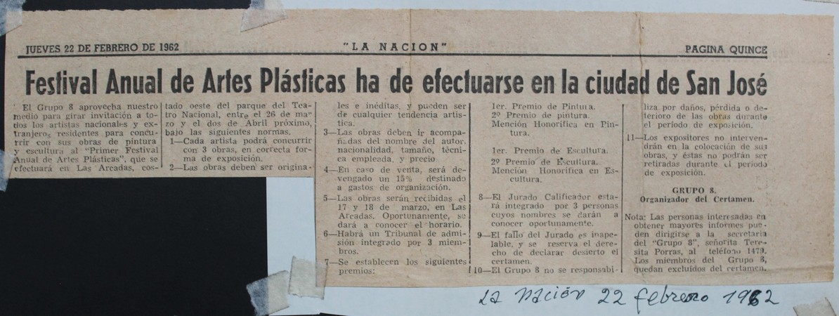 | dc.description | Nota publicada en La Nación de parte del Grupo 8 invitando a artistas nacionales y del extranjero a participar en el Primer Festival de Artes Plásticas. En la nota se detallan las normas para participar y los premios que serían entregados. | |