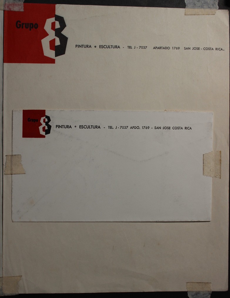 | dc.description | Hoja y sobre con diseños del Grupo 8, así como su información telefónica y de apartado. | |