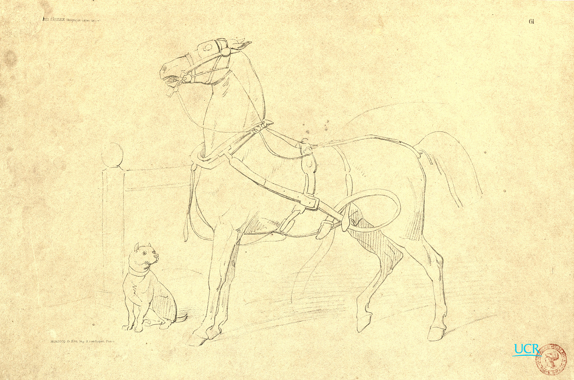 En esta colección de láminas se pueden encontrar litografías que muestran diferentes animales, tanto salvajes como domésticos. Encontramos láminas con leones, tigres, y osos, así como con vacas, toros, gallinas, gatos, perros, caballos, etc.