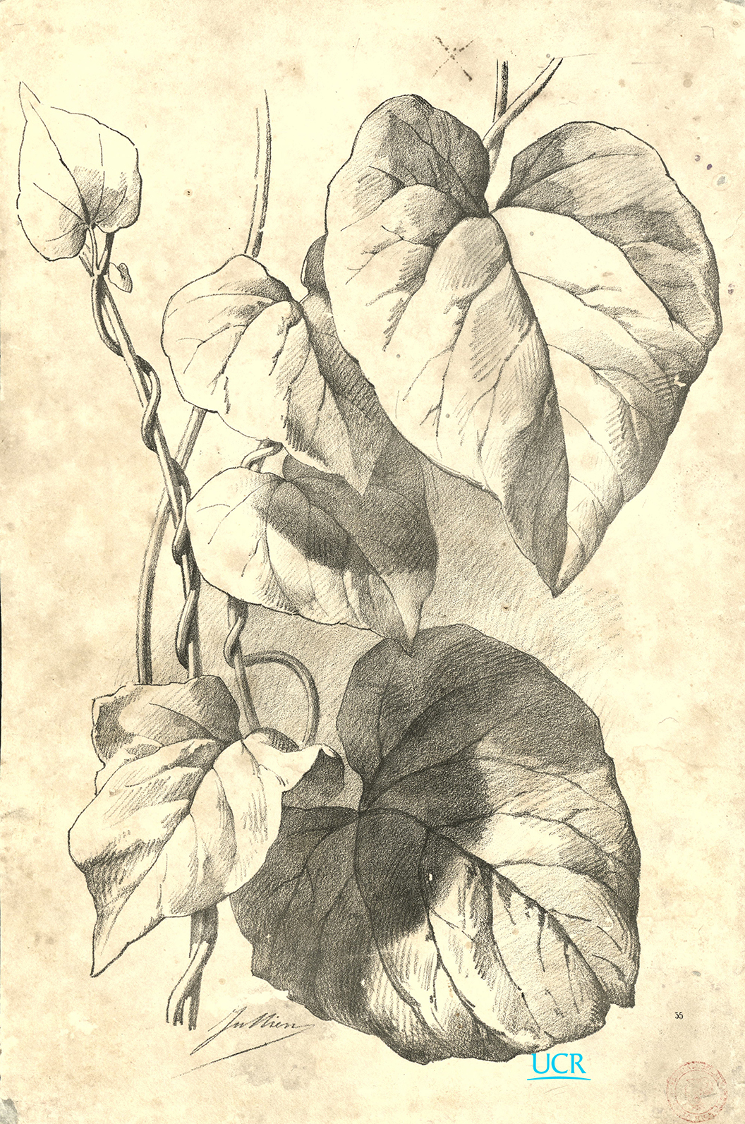 La colección de botánica, presenta litografías de dibujos que representan detalladamente una gran variedad de vegetación, como plantas, hierbas, hojas y flores.