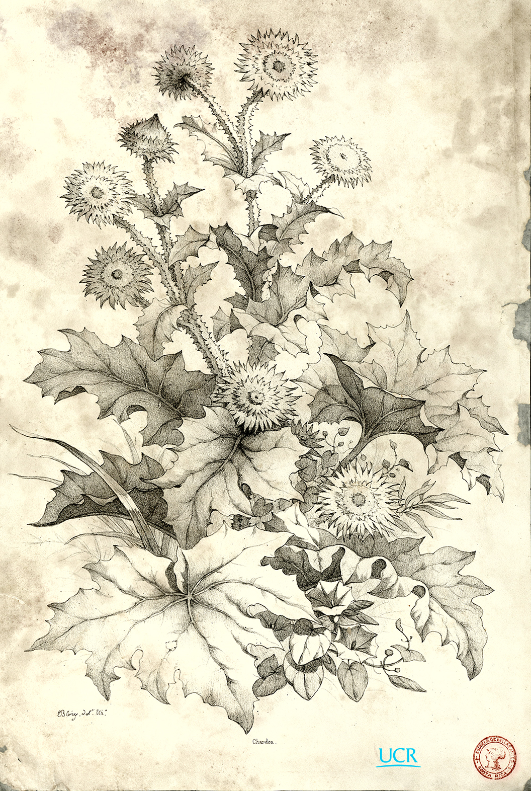 La colección de botánica, presenta litografías de dibujos que representan detalladamente una gran variedad de vegetación, como plantas, hierbas, hojas y flores.