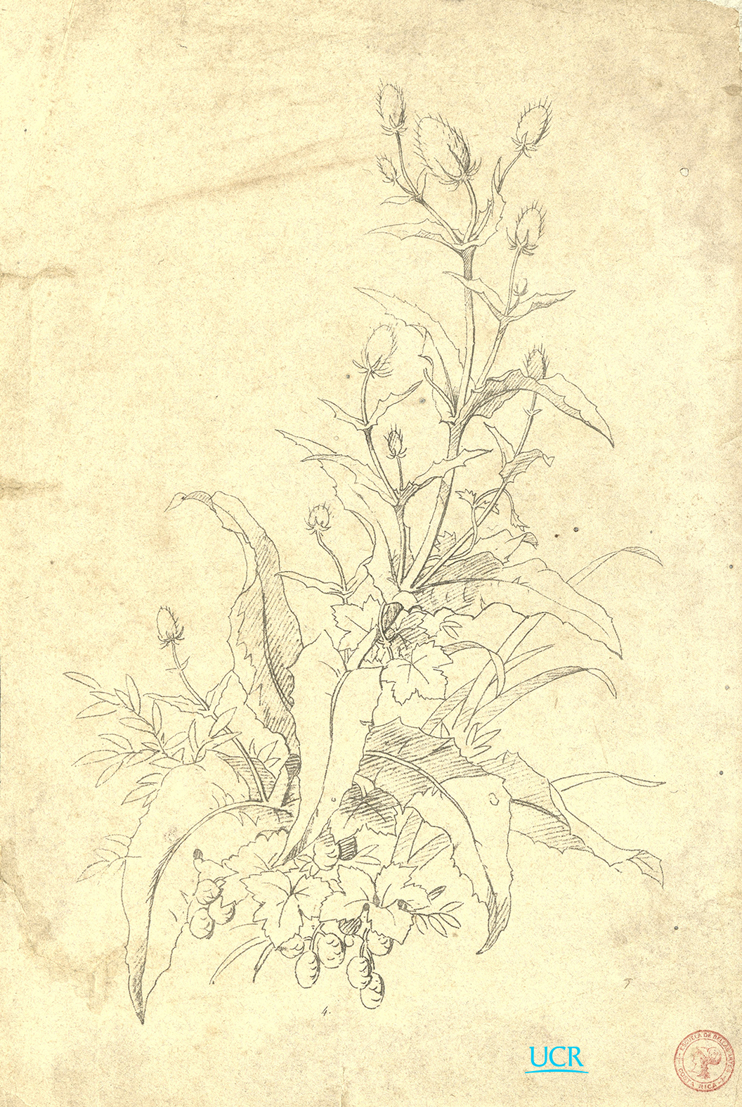 La colección de botánica, presenta litografías de dibujos que representan detalladamente una gran variedad de vegetación, como plantas, hierbas, hojas y flores.