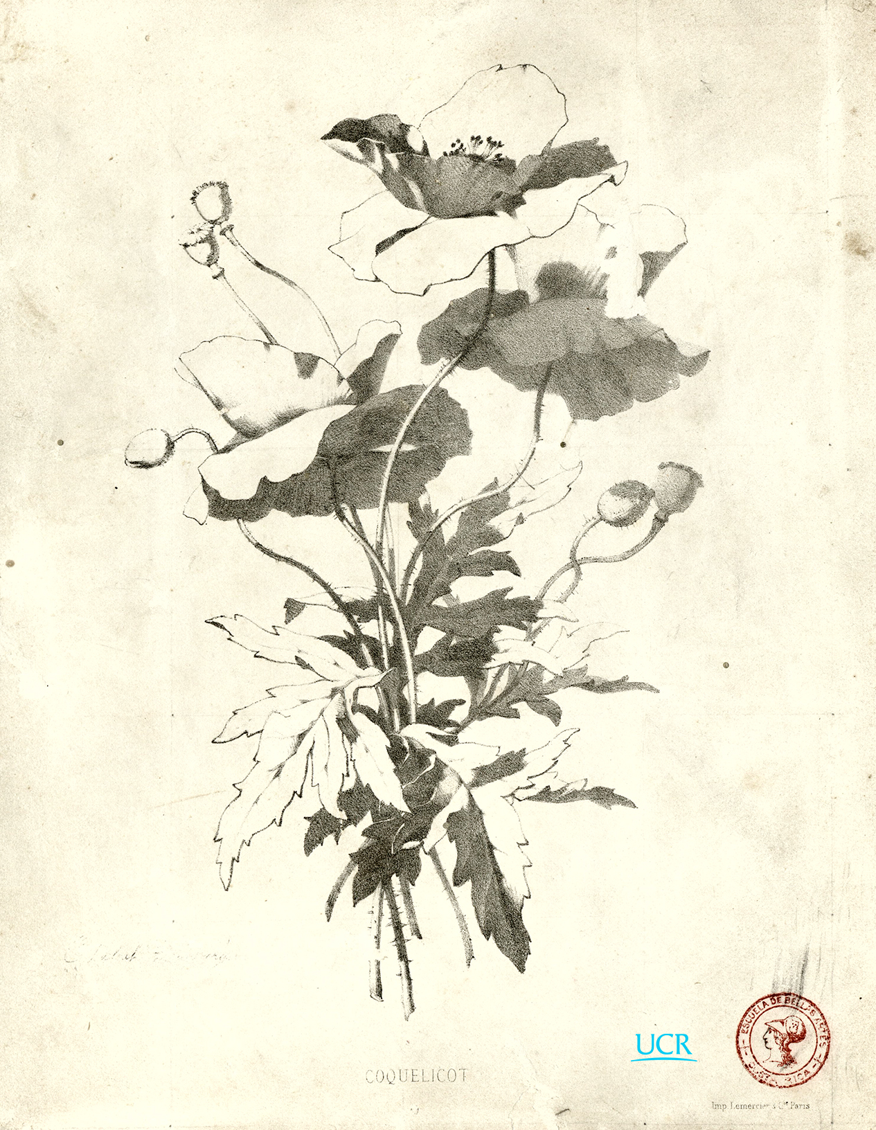 La colección de botánica, presenta litografías de dibujos que representan detalladamente una gran variedad de vegetación, como plantas, hierbas, hojas y flores.