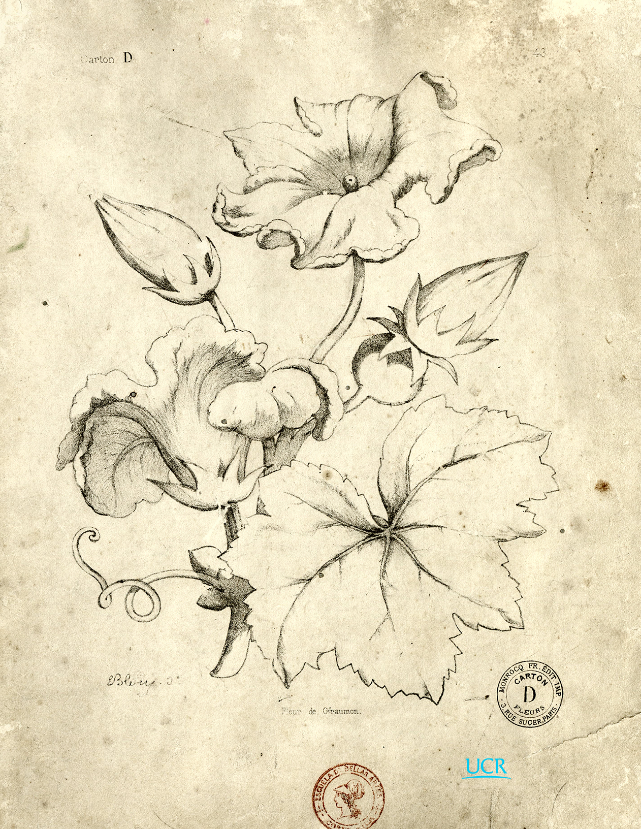 La colección de botánica, presenta litografías de dibujos que representan detalladamente una gran variedad de vegetación, como plantas, hierbas, hojas y flores.