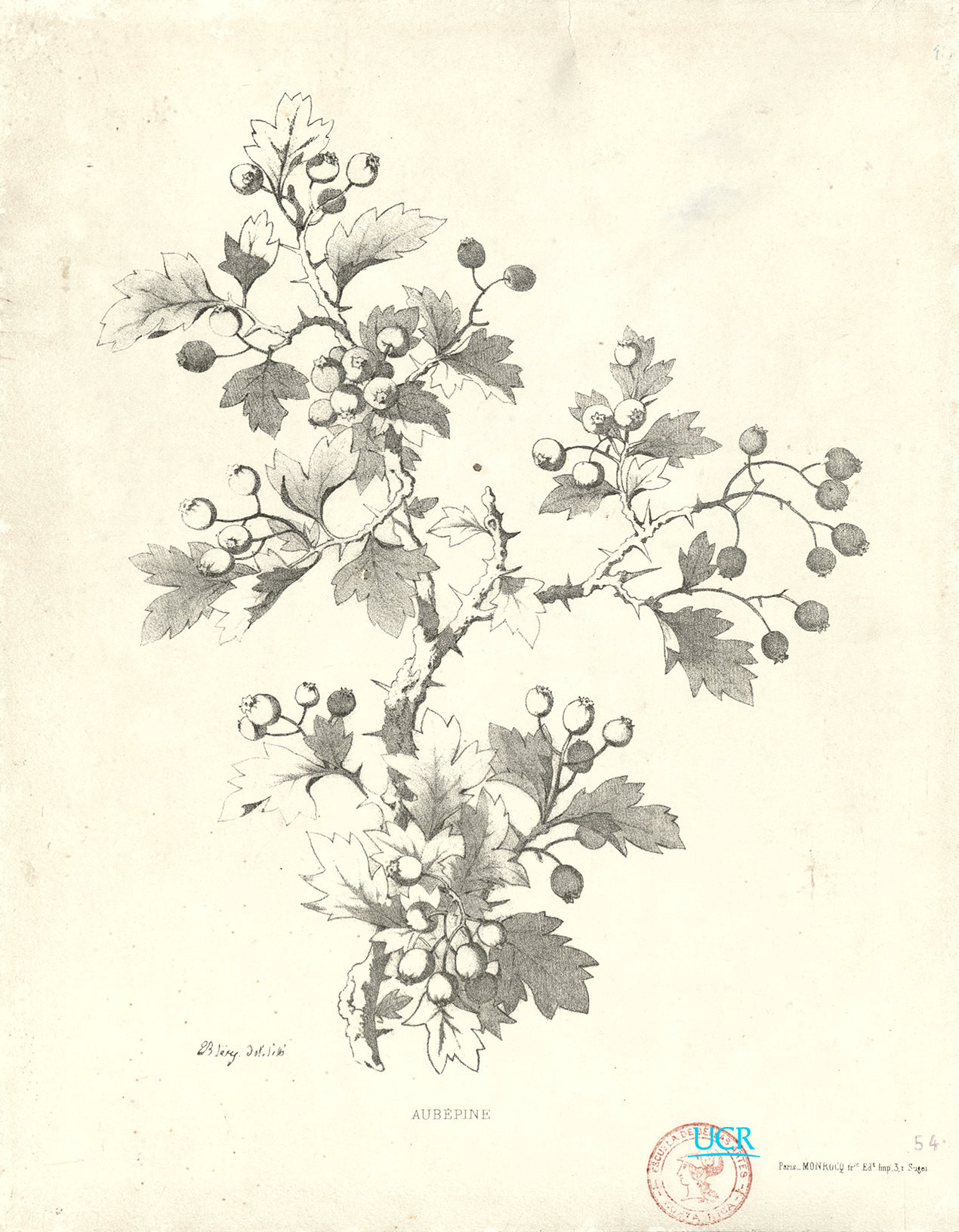 La colección de botánica, presenta litografías de dibujos que representan detalladamente una gran variedad de vegetación, como plantas, hierbas, hojas y flores.