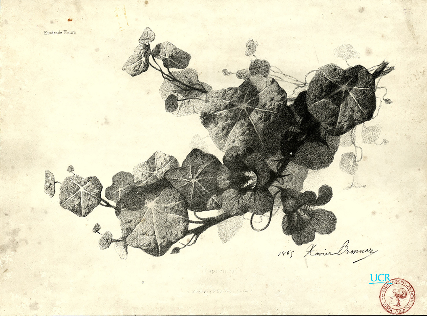 La colección de botánica, presenta litografías de dibujos que representan detalladamente una gran variedad de vegetación, como plantas, hierbas, hojas y flores.