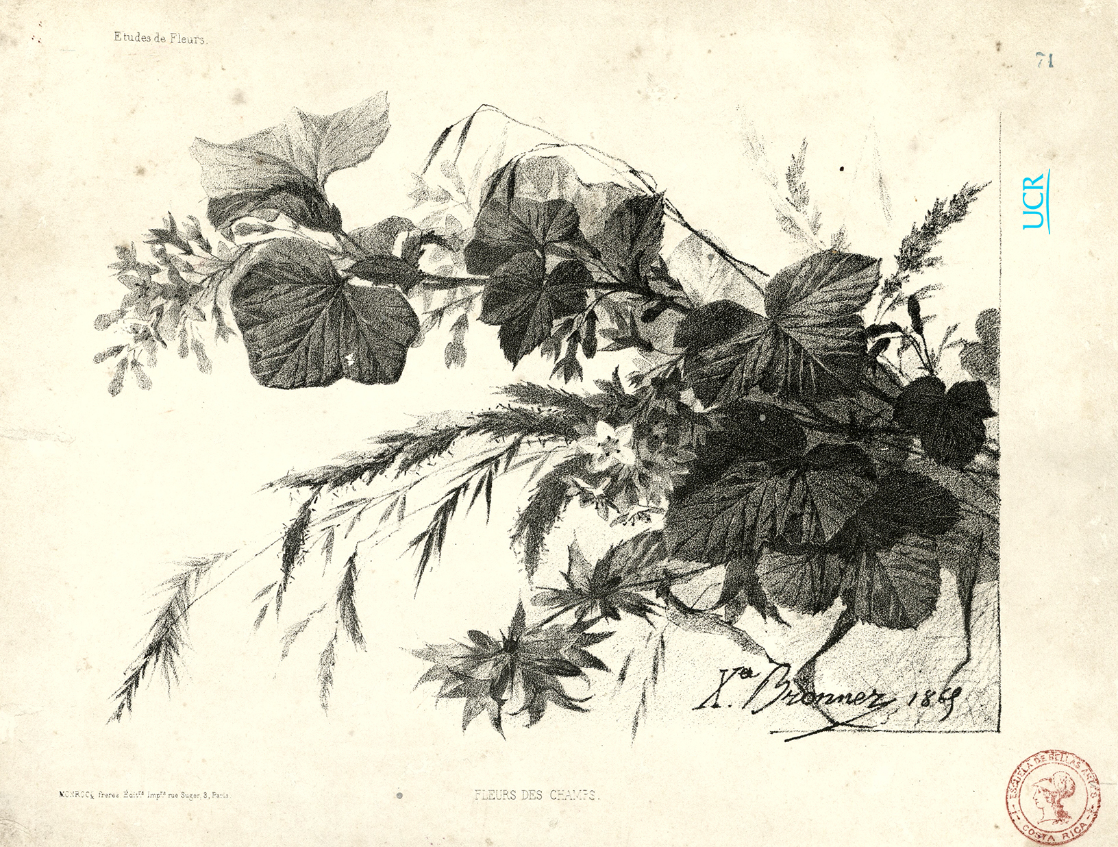 La colección de botánica, presenta litografías de dibujos que representan detalladamente una gran variedad de vegetación, como plantas, hierbas, hojas y flores.