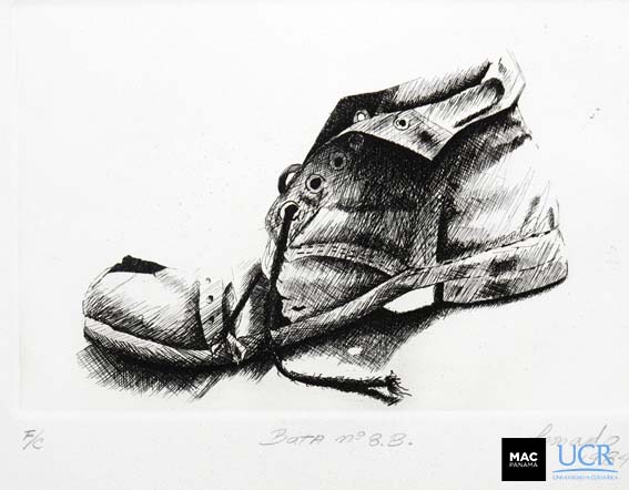 | dc.description | Una bota muy deteriorada vista de perfil, con la punta rota y el cordón suelto y desflecado. | es |