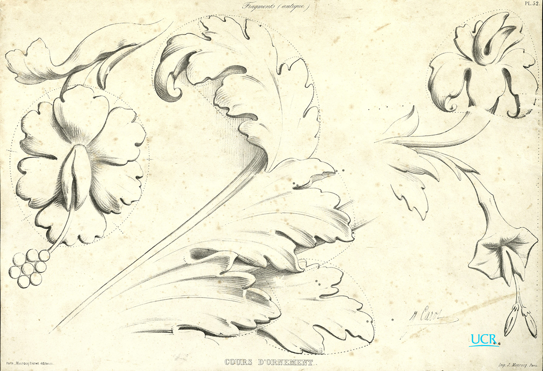 En esta colección de láminas se pueden encontrar principalmente dibujos de referencia para ornamentación arquitectónica.