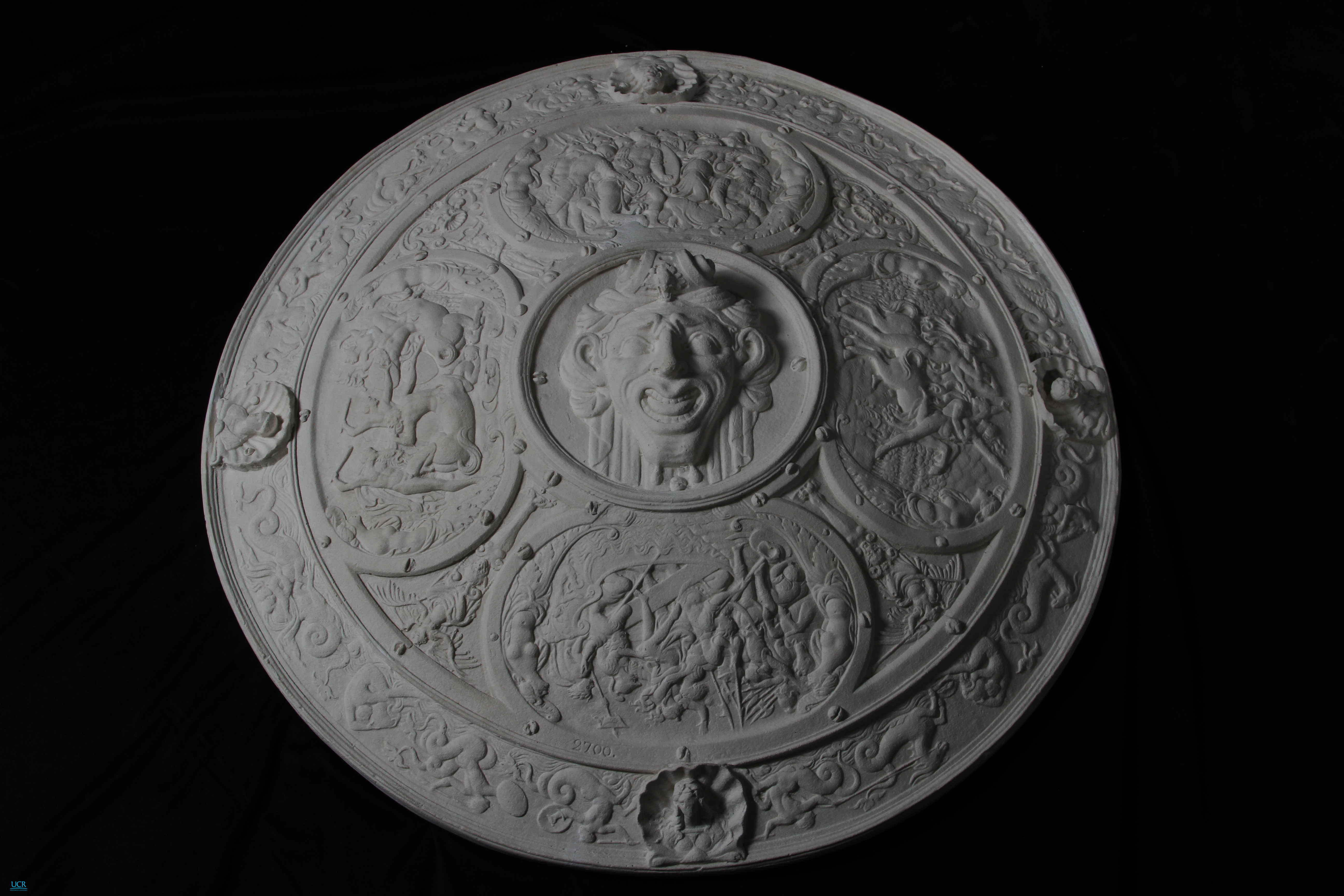 | dc.description.abstract | Relieve circular con una máscara en el centro, rodeada por cuatro escenas enmarcadas cada una por un borde y entre ellas se observan otros personajes, luego se observa una decoración en el borde externo igualmente con figuras, y cuatro de ellas dentro de una concha. | es |