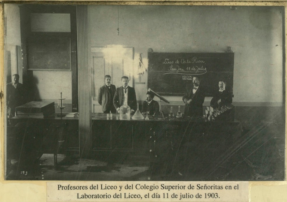 | dc.description.abstract | Prof. José Fidel Tristán (3º de izq. A derecha) y otros profs. Liceo de Costa Rica y CSS en laboratorio Liceo de Costa Rica. En la pizarra al fondo se lee "Liceo de Costa Rica San José 11 de julio 1903" | |