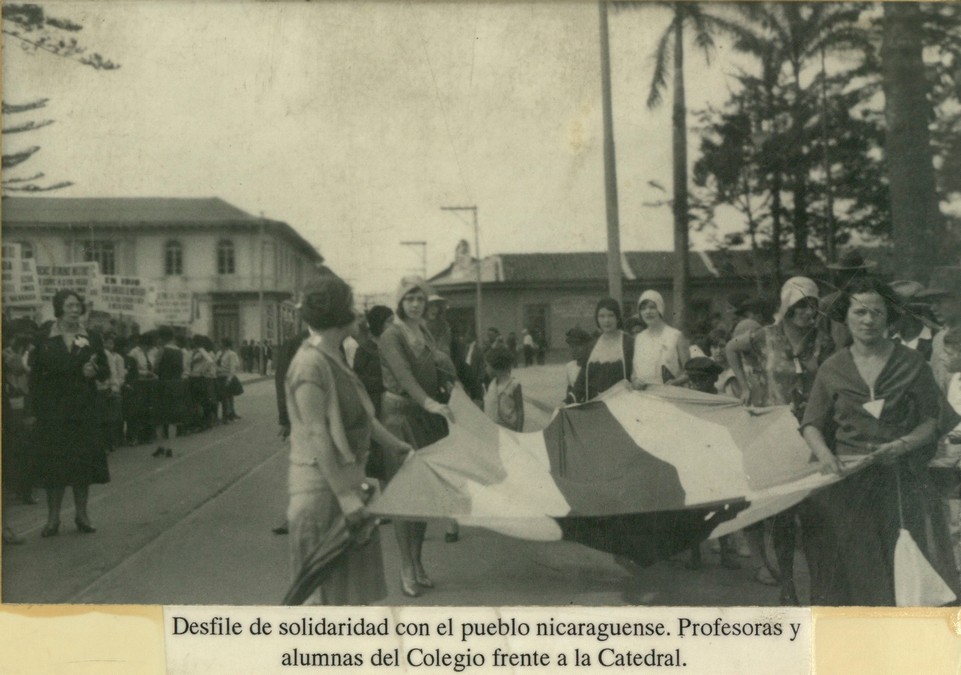 | dc.description.abstract | Alumnas y profesoras con bandera de Costa Rica del colegio en un desfile de solidaridad del CSS con el pueblo nicaragüense. Frente a la catedral metropolitana, San José. | |