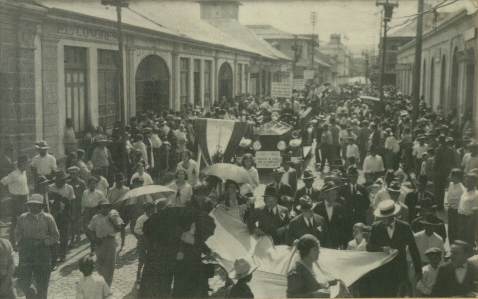 | dc.description.abstract | Transeúntes y alumnas del colegio en un desfile de solidaridad del CSS con el pueblo nicaragüense. En el margen inferior derecho, sosteniendo la esquina de la bandera está la profesora Esther Castro de Tristán. Al centro de la calle se observa el camión de bomberos. San José, avenida 1° entre calle 4 y 6. Al fondo el edificio del correo, y a la derecha el Mercado Central. | |